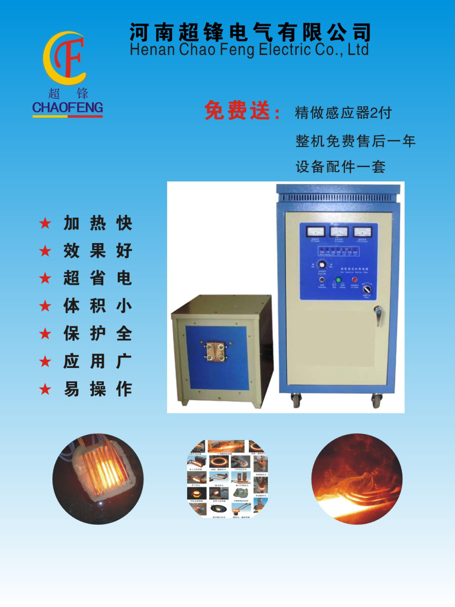 河南超锋电气专业生产高频炉中频炉超音频 超高频 淬火机床等工装,十几年兢兢业业,设计先进,做工精良,服务到家,受到了很多新老客户一致好评。